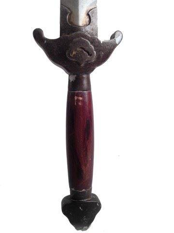 Silent Wolf (Donnie Yen) screen used, stunt Jian's, aluminum sword with brown wood handle and aluminum upper and lower part of the handle. Sword has been broken during production and has been taped together.(4x38)May vary slightly in appearance.