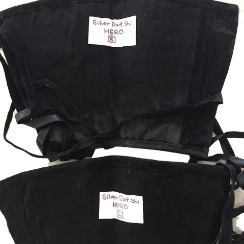 Silver Dart Shi (Juju Chan) screen used, hero, black leather cuffs, worn and marked left, and right. Used in the Tea House scene.