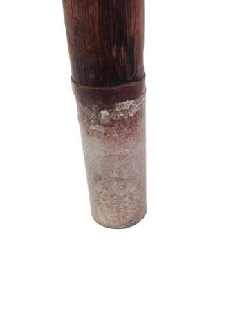 Screen used, stunt, snake spear (rubber). Flame shaped tip. Other side is blunt, with a wooden handle. Used for fighting scenes.(76x2)