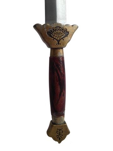 Snow Vase (Natasha Liu Bordizzo) screen used, stunt, brown wood and bronze alloy sword, design at the top and bottom of the handle.(38x3)
