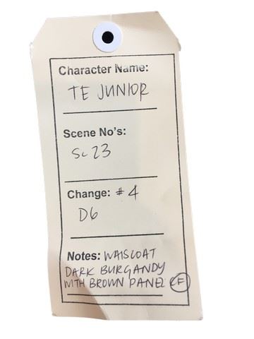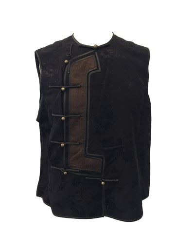 Te Junior (Gary Young) screen worn, dark burgundy with brown panel waistcoat. Includes wardrobe tag.
