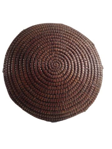 Turtle Ma (Darryl Quon) screen used, hero shield made of brown painted wicker. Includes leather straps attached to the inside of the shield.(20"x20")