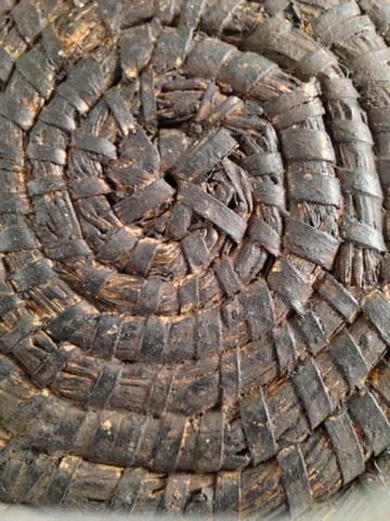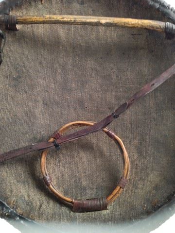 Turtle Ma (Darryl Quon) screen used, hero, shield made of bamboo burlap and wicker, wicker and bamboo have been painted a very dark brown color but color is rubbing off from production, bamboo handles on the inside of the shield, may vary slightly in appearance.(20x20)