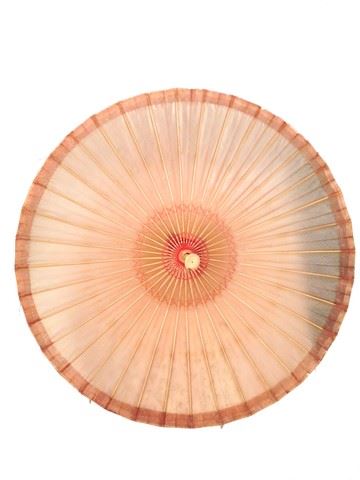 Screen used umbrella used in the funeral scene. Hand made with bamboo, wood ,wax and thick paper that is also covered in wax.Red cloth is sewn into a design at the top of the umbrella. When it opens, the inside is red string knitted into a beautiful design. This is a functioning umbrella but is also a amazing piece of art.(26x3)