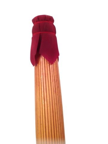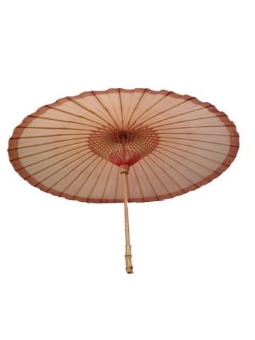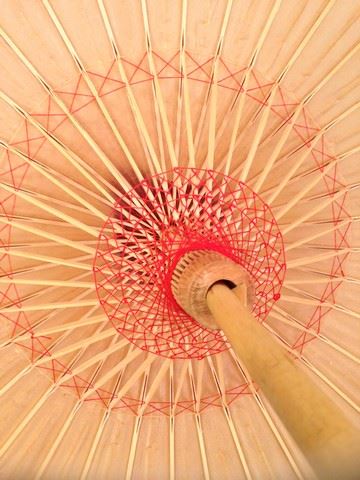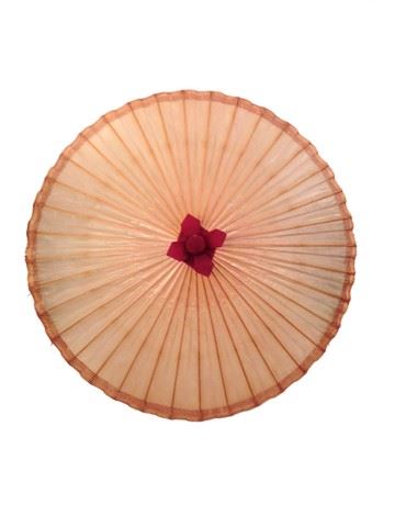 Screen used umbrella used in the funeral scene. Hand made with bamboo, wood ,wax and thick paper that is also covered in wax.Red cloth is sewn into a design at the top of the umbrella. When it opens, the inside is red string knitted into a beautiful design. This is a functioning umbrella but is also a amazing piece of art.(26x3)