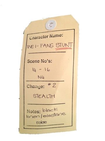 Wei-Fang (Harry Shum Jr) screen worn, hero, black linen tunic with matching black linen trousers. Wardrobe was worn in bed during filming. Wardrobe tag included.
