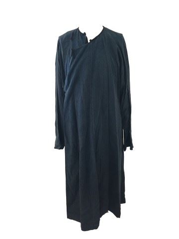 Wei-Fang (Harry Shum Jr.) blue robe that ties up the side, black trim, worn in the frozen lake scene.
