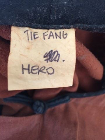 Wei-Fang (Harry Shum Jr.) screen worn, hero, orange linen robe that buttons up the side, with black trim.