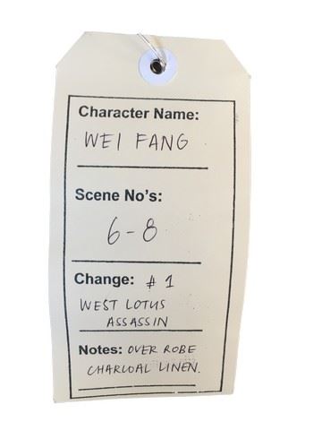Wei-Fang (Harry Shum Jr.) screen worn, hero, charcoal over robe with linen, wardrobe tag included. Worn in scenes 6-8.