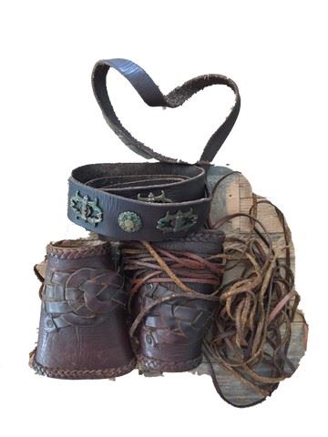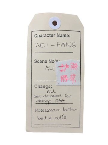 Wei-Fang (Harry Shum Jr.) screen worn, brown leather wrist wraps or cuffs, brown leather belt. Wardrobe tag included. (6"x5" cuffs)(2"x51" belt).