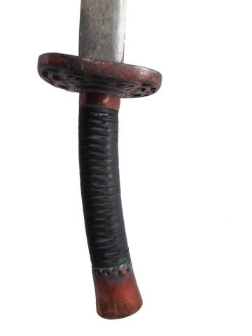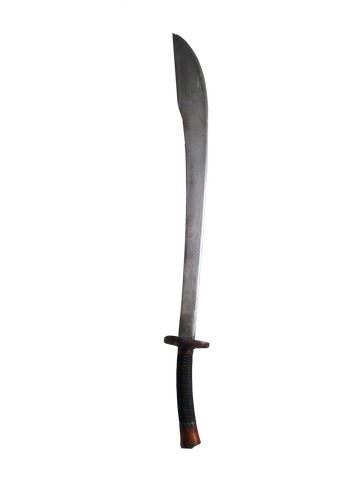 Yu (Michelle Yeoh) screen used, hero, Dao made of a silver resin blade. The silver is peeling off in some places and the handle is slightly warped. Copper color with black leather handle. (16"x3") Item may vary slightly from photo.