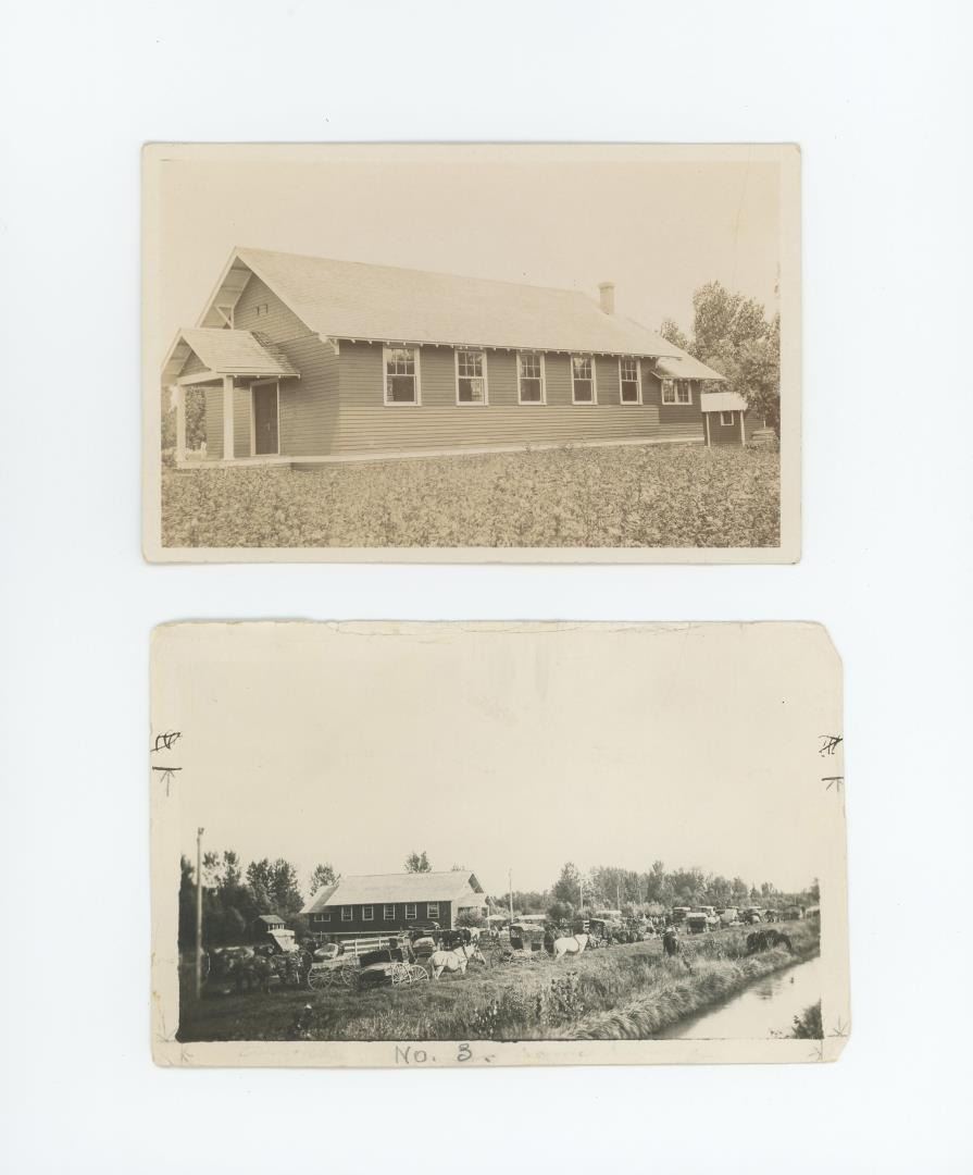 Described on back: Indian Wagons and teams lined up outside The Church at Crow Agency during a Sunday afternoon service. Our house is about two longs blocks further up the road in those trees, large irrigation canal in right foreground. Photo is 3 5/8" by 5 3/4". Provenance: Aline Natalie Burgess Claremont Los Angeles, daughter of James Gregor Burgess builder of the Burgess Baptist Church Crow Agency Montana, through Decent.
