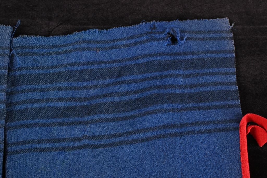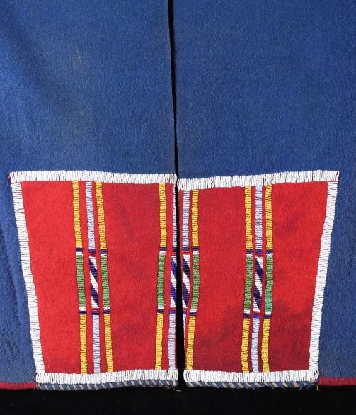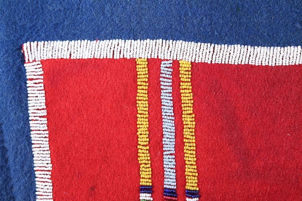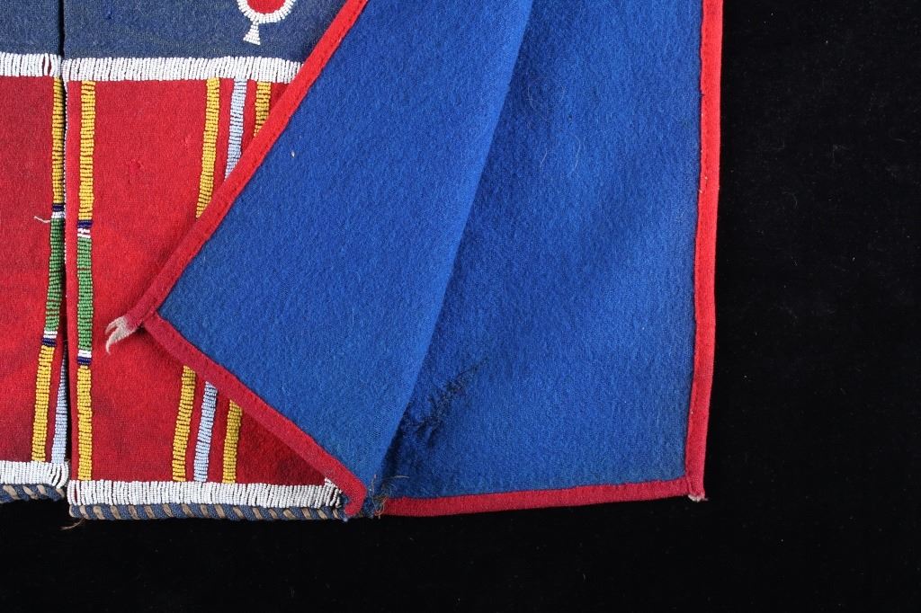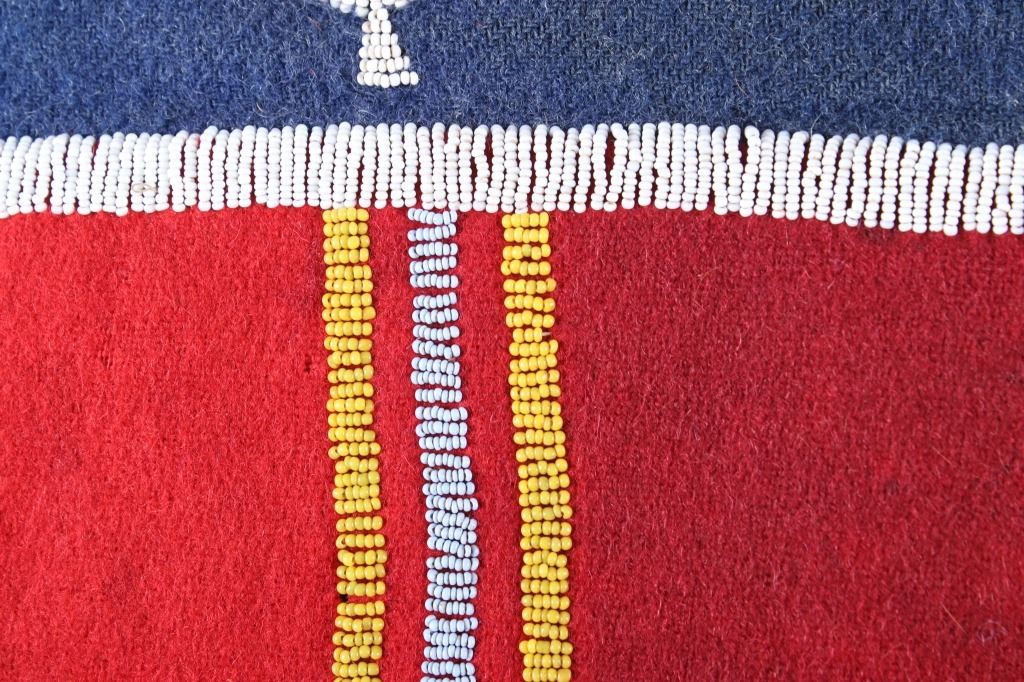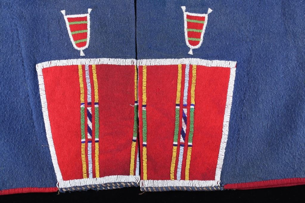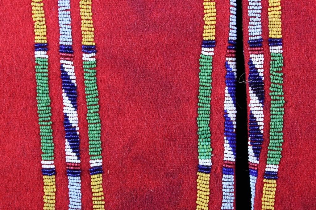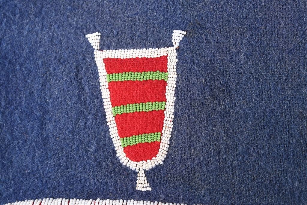 This is an outstanding set of 19th Century Crow Native American Indian wool leggings with wonderful beadwork. The leggings show an old all wool trade blanket construction with red shroud wool trade clothe edging and an artful section of red wool trade clothe which is accented by the geometric traditional beadwork. The beadwork and beads are all period correct 19th Century showing chalk white, greasy yellow, medium green, cobalt, sky padre blue and red white heart. The beadwork extends to both sides of each legging with an artful bell upside down bell or Buffalo symbol on the front. The set shows very good well-preserved museum quality condition with little to no bead loss. Provenance: From a large Marion, Massachusetts old American Indian collection. Each legging measures 32”L x 17”W individually.