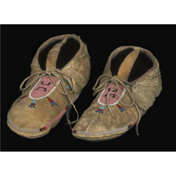 Crow Beaded Moccasins. 10 1/2". Horsetrack designs. c. 1890s. Excellent condition. (est $1,200-1,500)