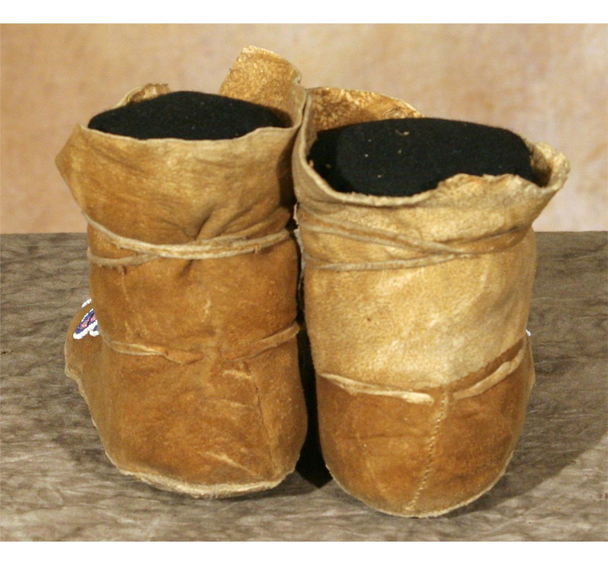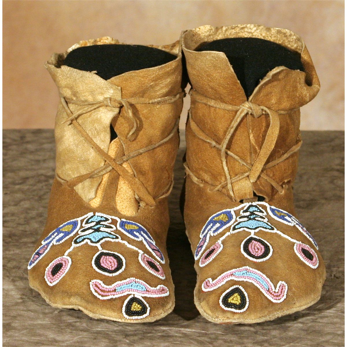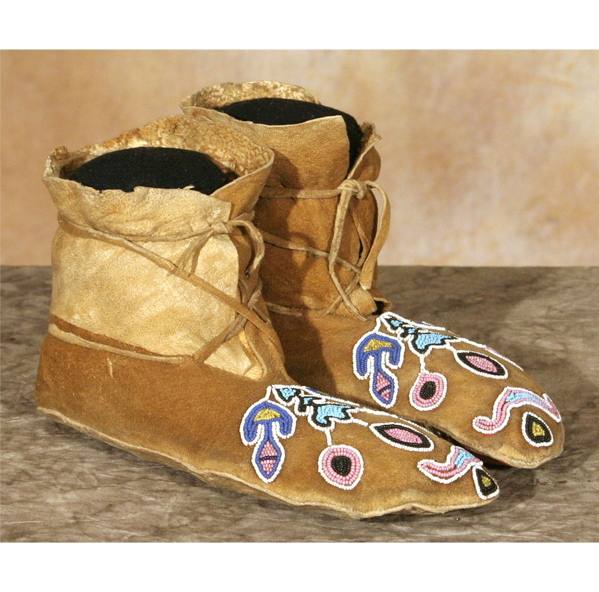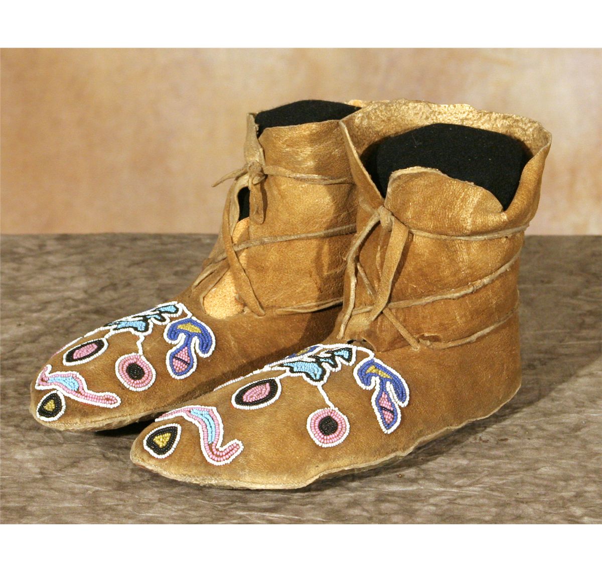 Crow Moccasins. 10" long. Beautiful floral beaded designs. Parfleche soles. Circa 1890. Provenance: Ex-Karl May Museum collection (Bamburg, Germany)