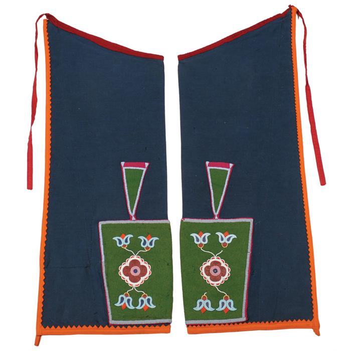 Crow Beaded Panel Leggings. 36" long. On original stroud cloth. 19th century. Fine condition. (est $2,000-3,000)