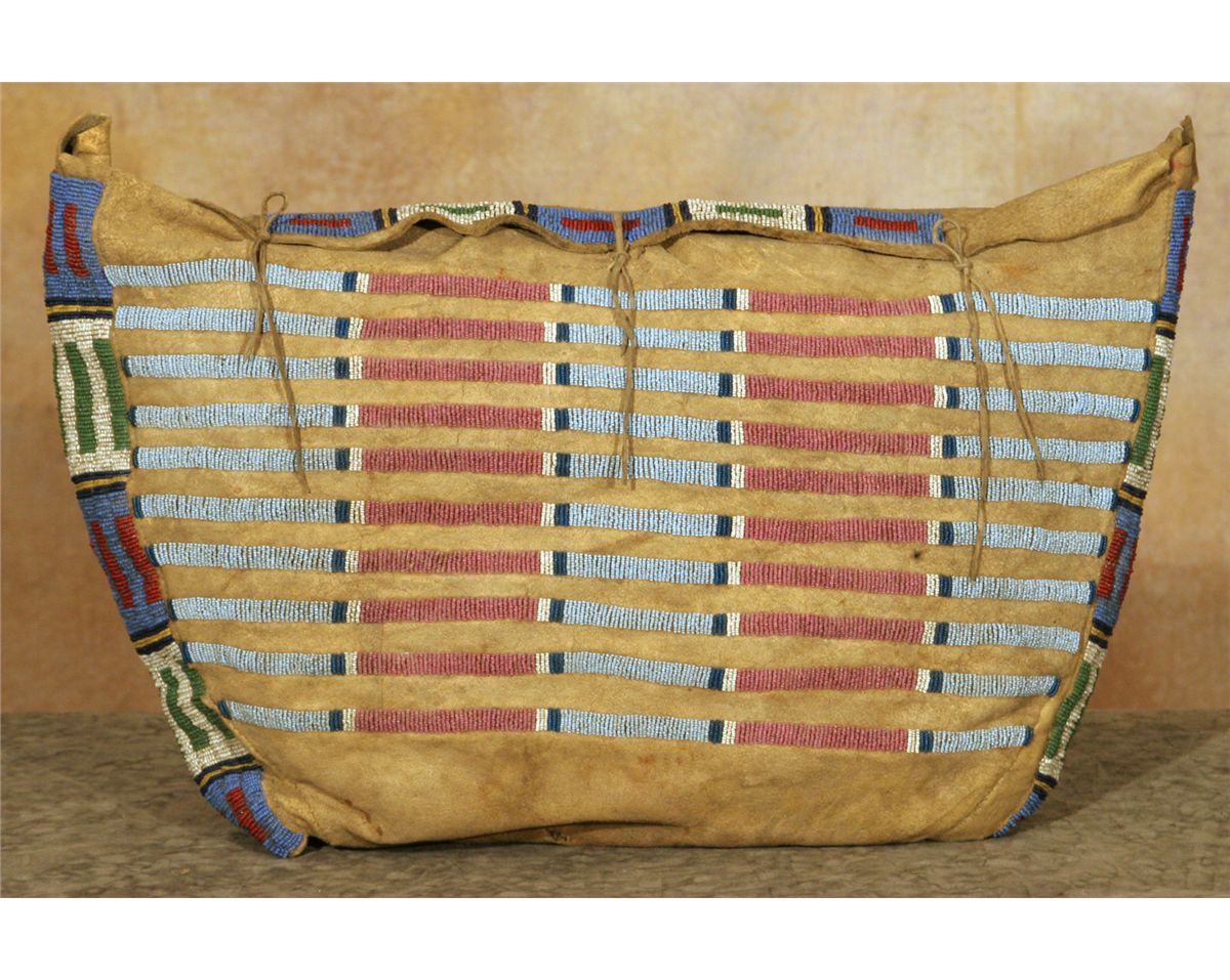 Crow Possible Bag. 15" x 23" at widest point. Finely Beaded. 19th century.