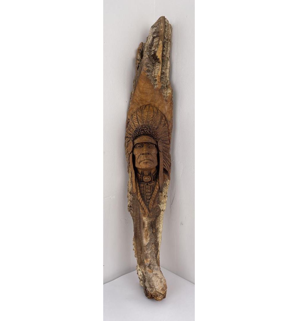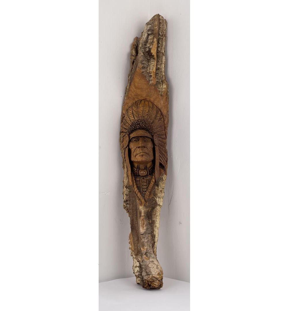 Very nice wood Indian Carving by Montana Artist Pat Welliver. 28" long.