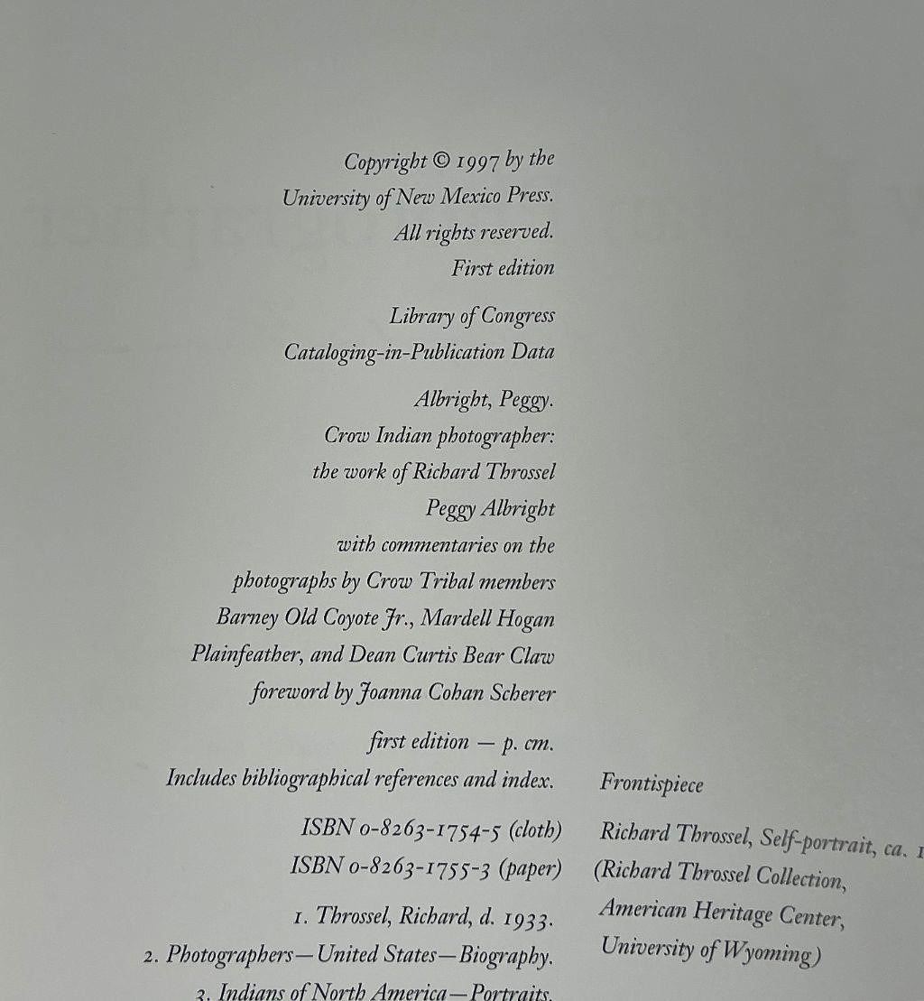 First edition 1997. The Work of Richard Throssel by Peggy Albright foreword by Joanna Cohan Scherer.