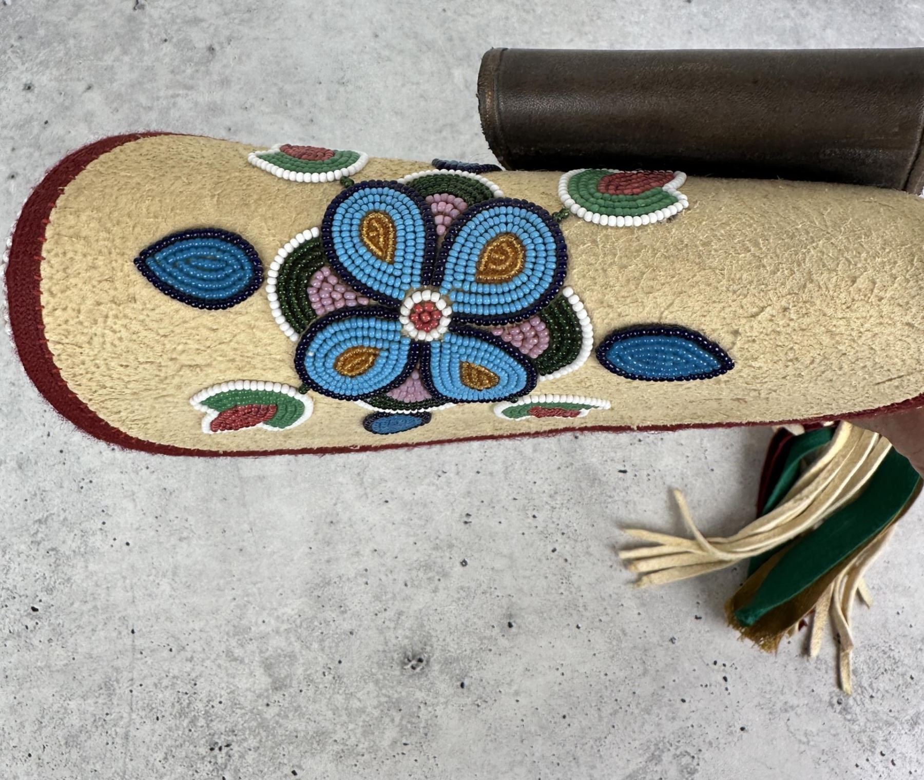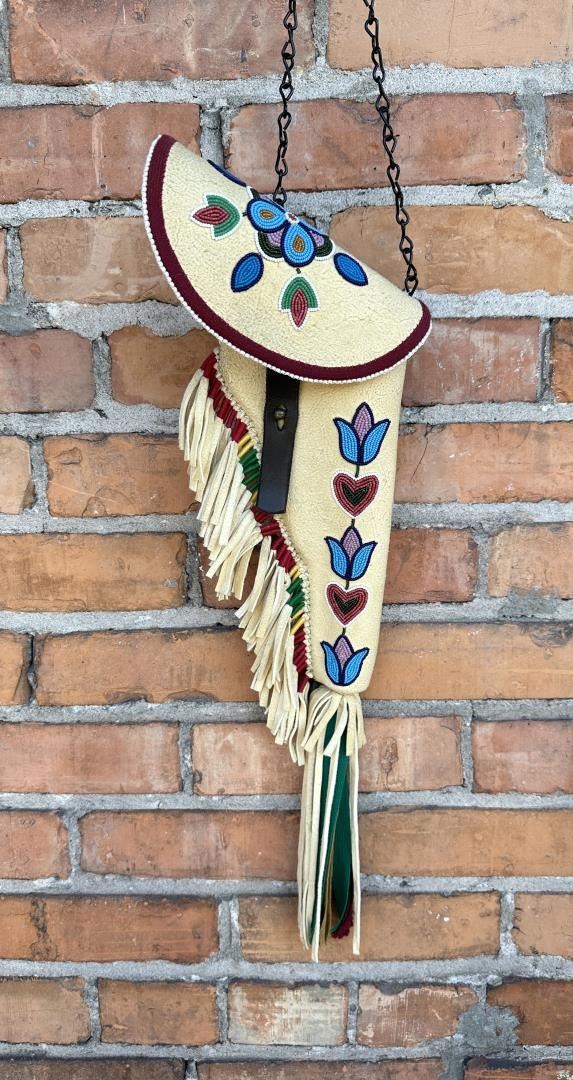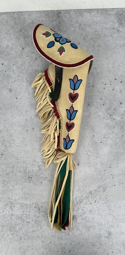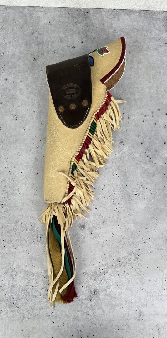 22 3/8" long with fringe. Marked R.L. Garritson Montana Territory. Loop and holster body made by Ron L Garritson Bozeman Montana, Crow Beadwork. Second half of the 21st Century.