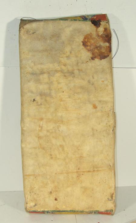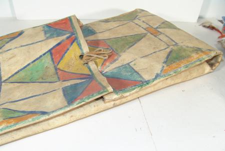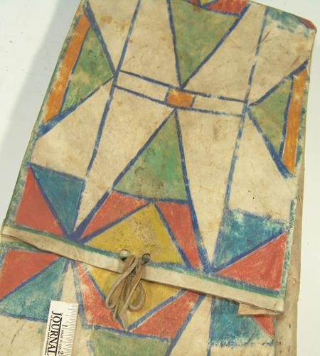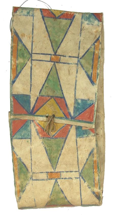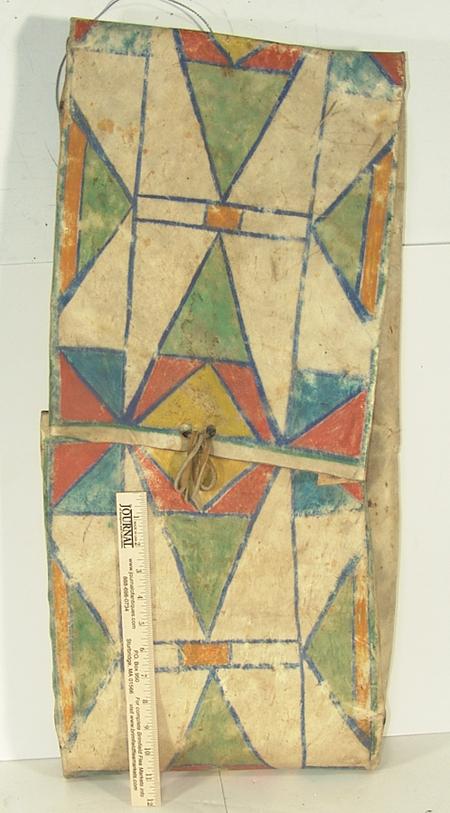 Classic, old, shaped rawhide case with traditional mineral painted geometric designs. Condition: very good, good patina. 29" x 13"