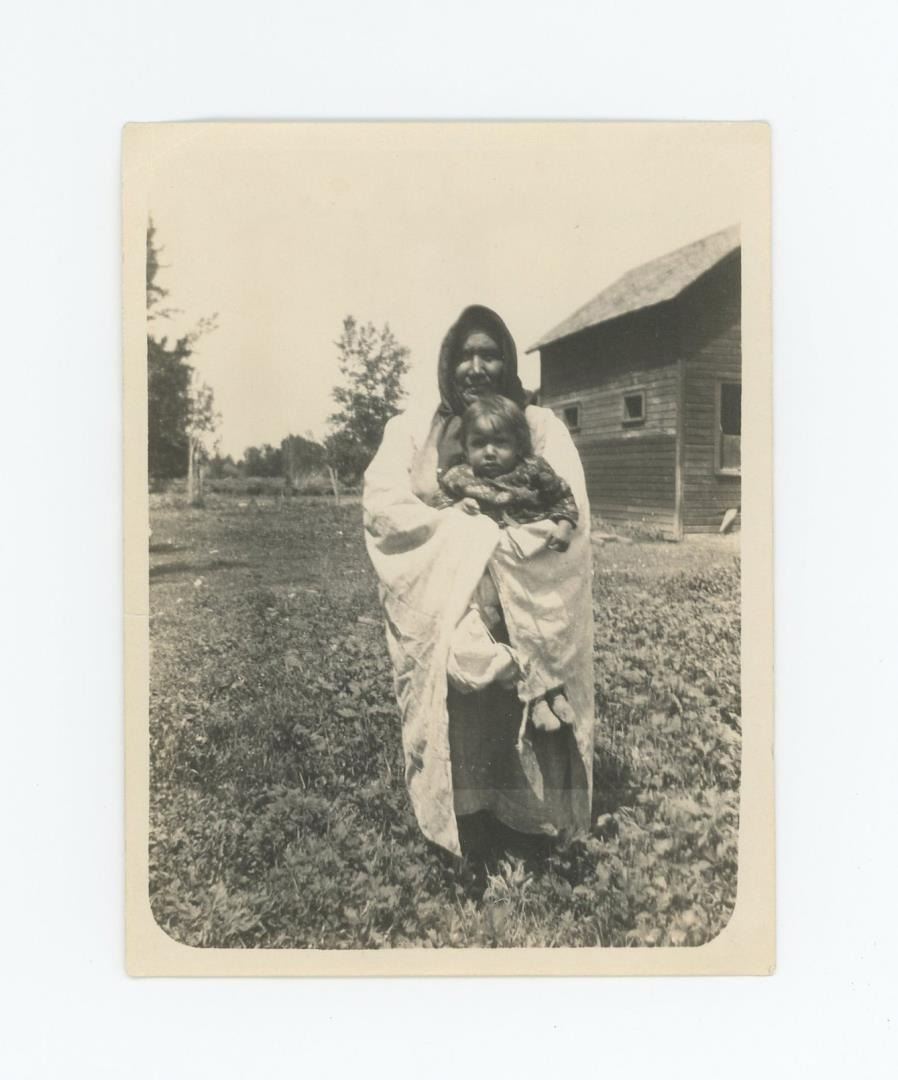 Titled on Back: Crow Woman and Child. 3 1/8" by 4 1/4" Provenance: Aline Natalie Burgess Claremont Los Angeles, daughter of James Gregor Burgess builder of the Burgess Baptist Church Crow Agency Montana, through Decent.