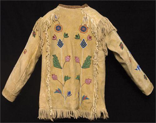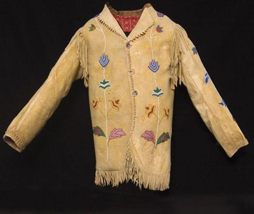 Crow Youth's Coat. 25" long. Fine floral beadwork on Indian tanned hide, dyed yellow. c. 1880-1890. Pristine condition. (est $5,000-6,000).