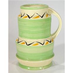 Crown Ducal Art Deco jug, hand painted with green, black and yellow bands, 22cm high
