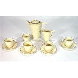 Crown Ducal four place teaset decorated with brown stripes onto a cream ground, comprised coffee pot, cream jug, sugar bowl, four cups with angular handles and saucers