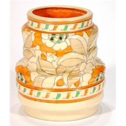 Crown Ducal ribbed vase, hand painted and tubelined with stylised flowers designed by Charlotte Rhead, pattern no. 4491, Crown Ducal marks and signature to base, 14cm high