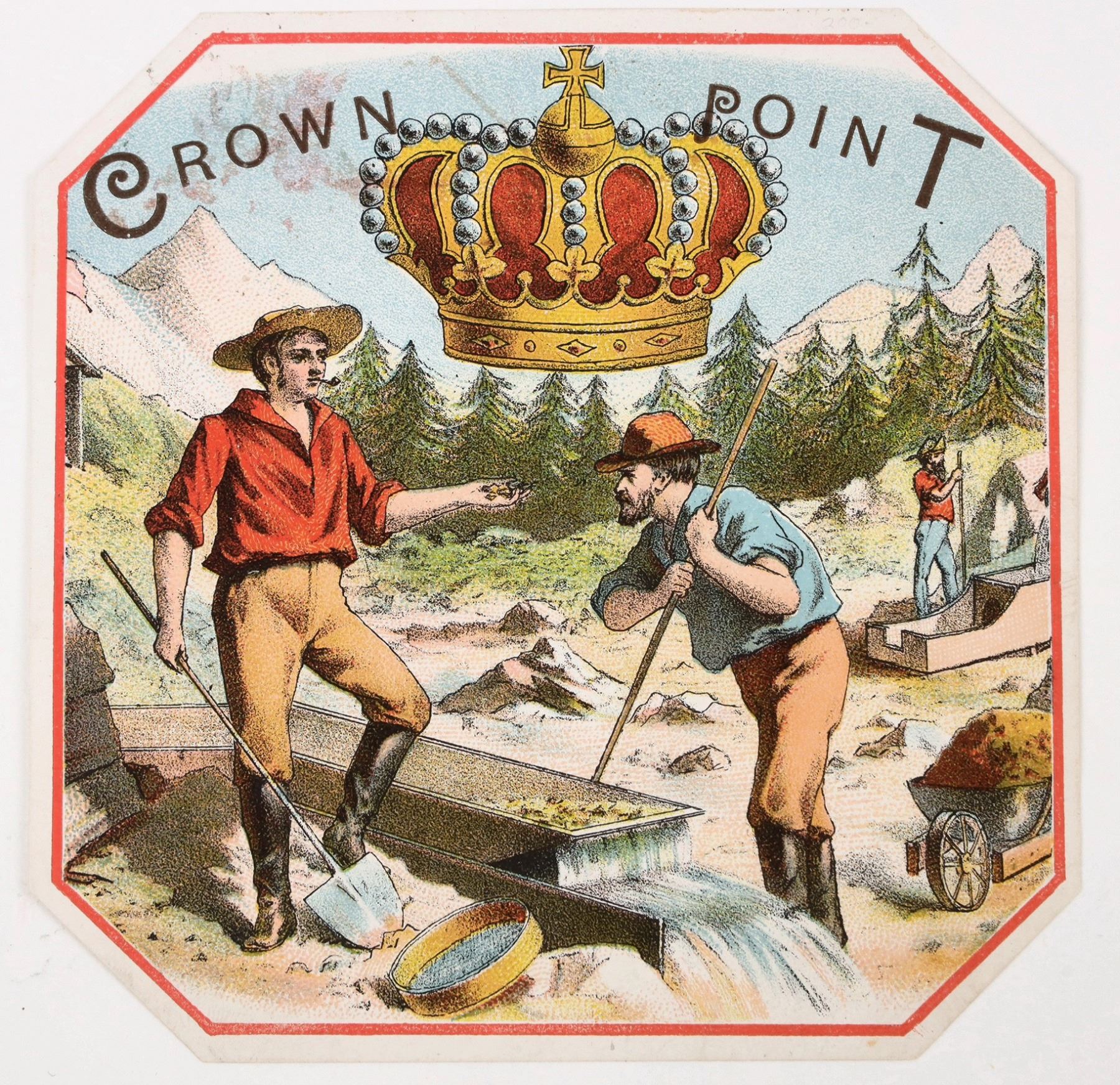 Crown Point Cigar Label, named after famous Comstock Mine. EXTREMELY RARE. Priced over $1000 online.