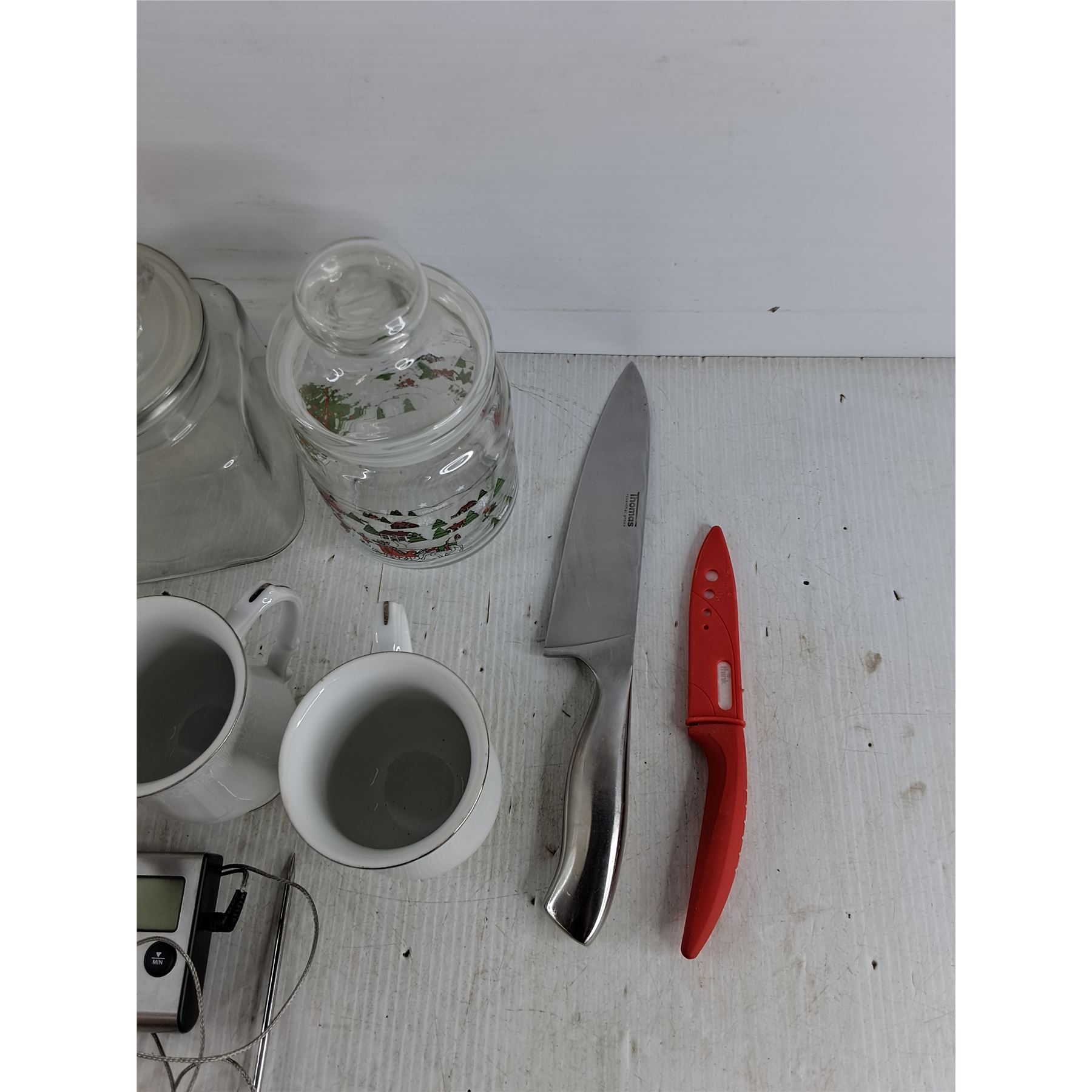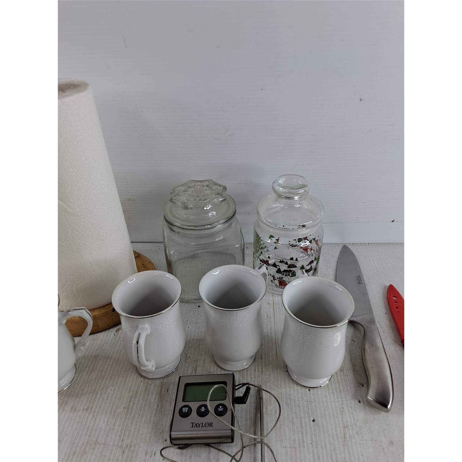 Crown Victoria Coffee Cups, Paper Towel Holder, Storage Jars, Knives, Cooking Thermometer - Tested
