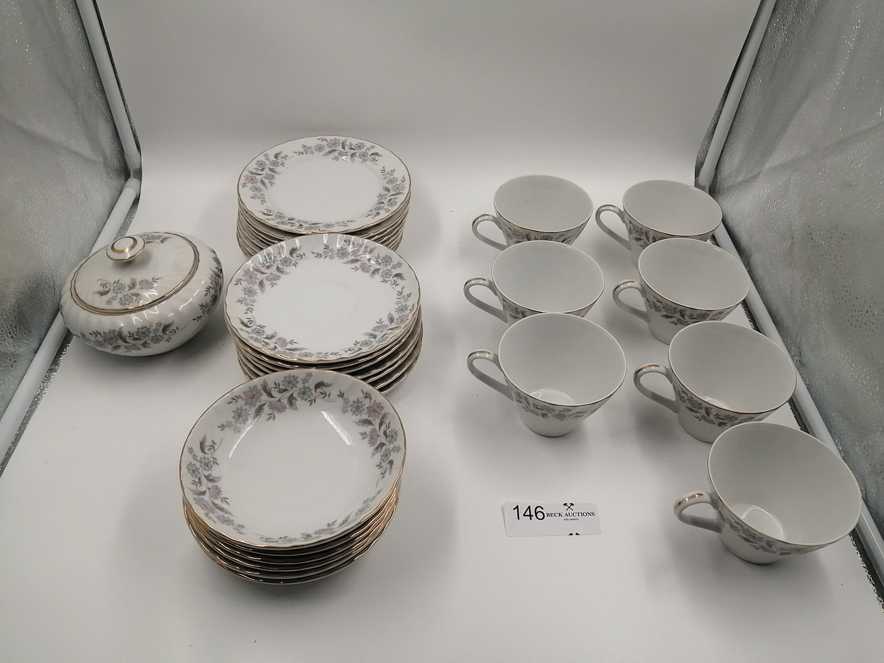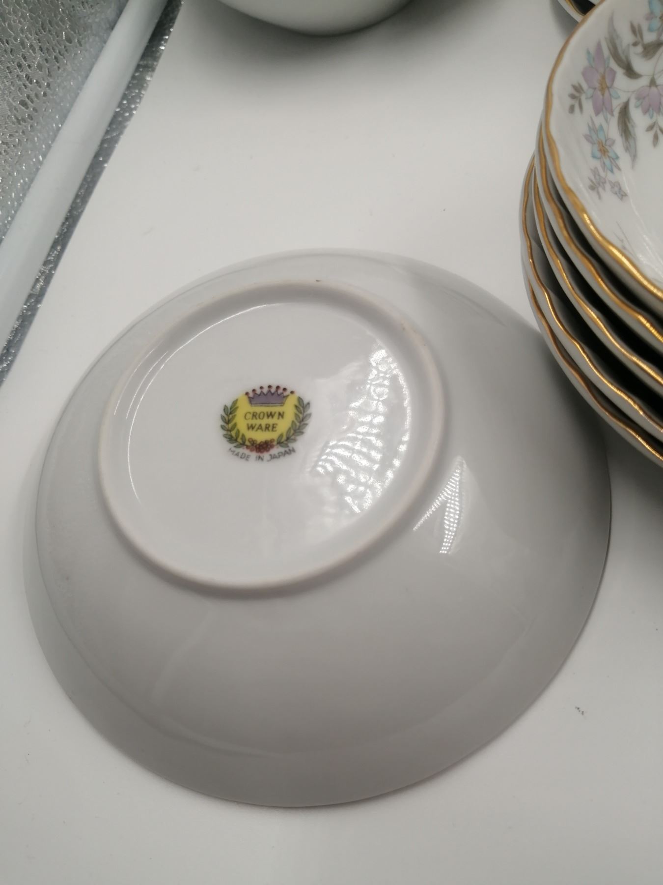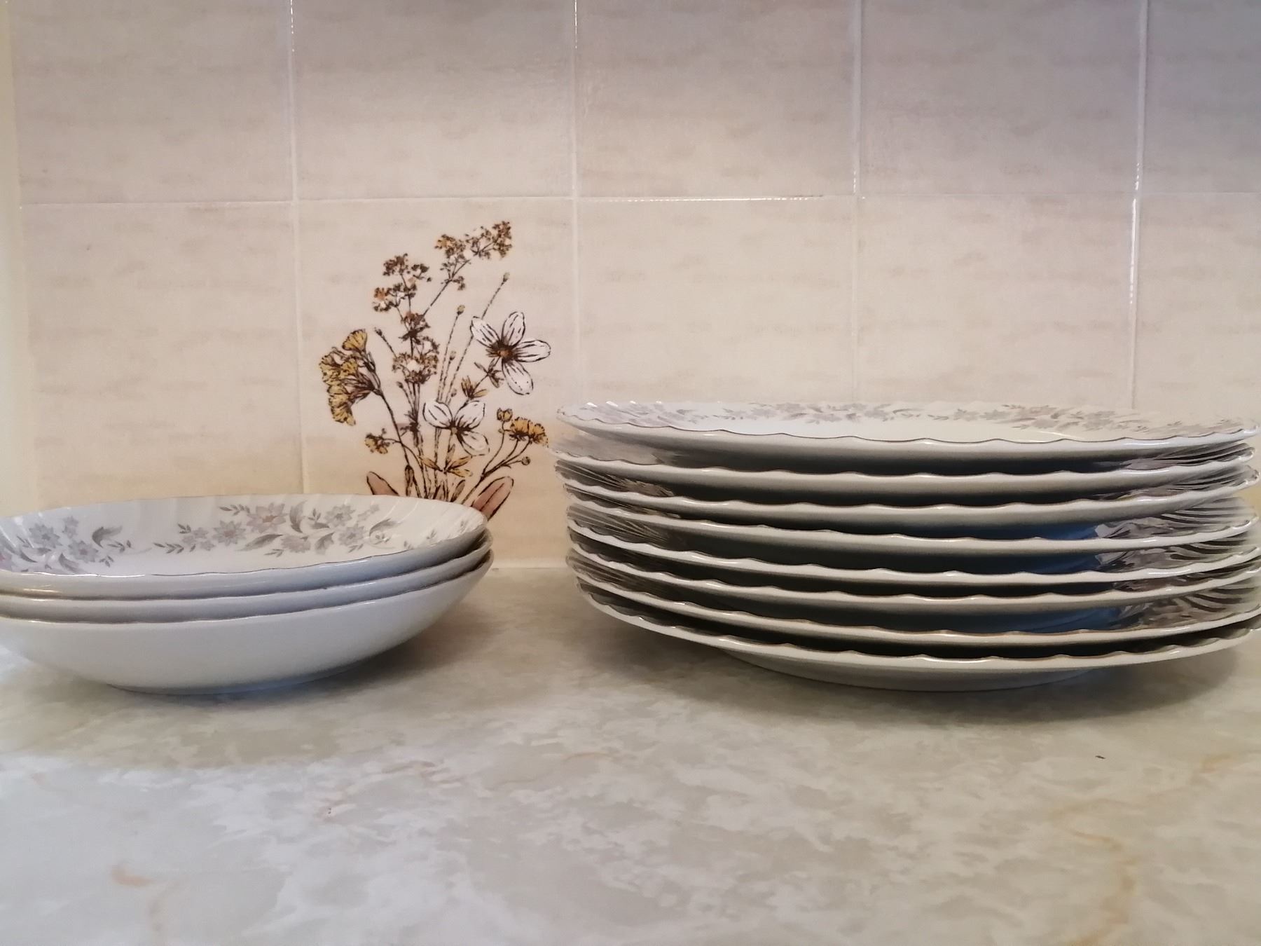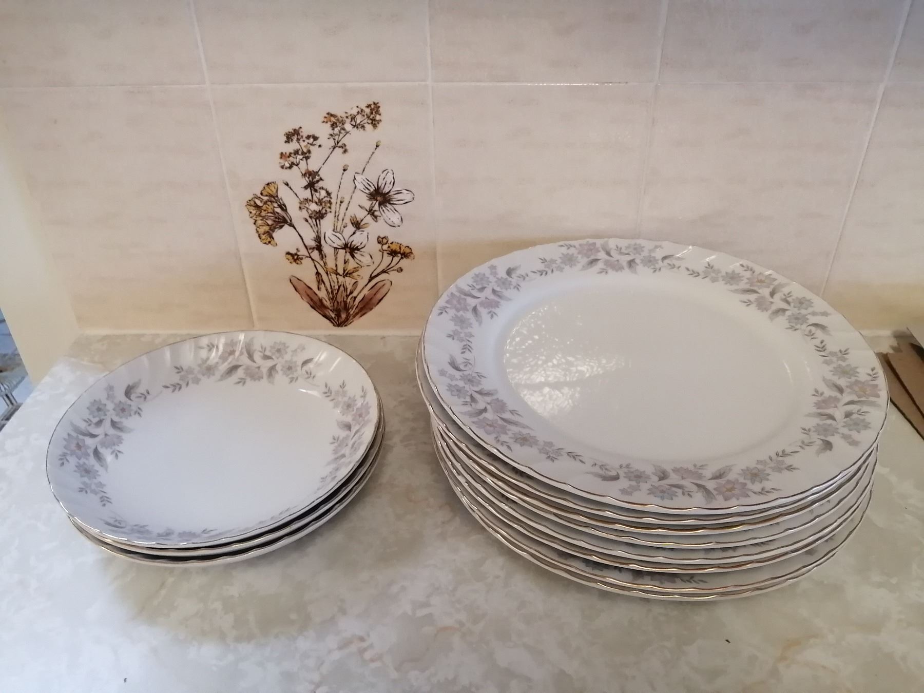 Includes 7 x cups, 7 x saucers, 8 x dessert plates, and 6 x bowls, 3 x dessert bowls, 8 x dinners plates