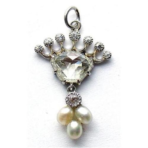 <tr><td>Title:Crown-shaped Diamond and Pearl Pendant</td></tr>