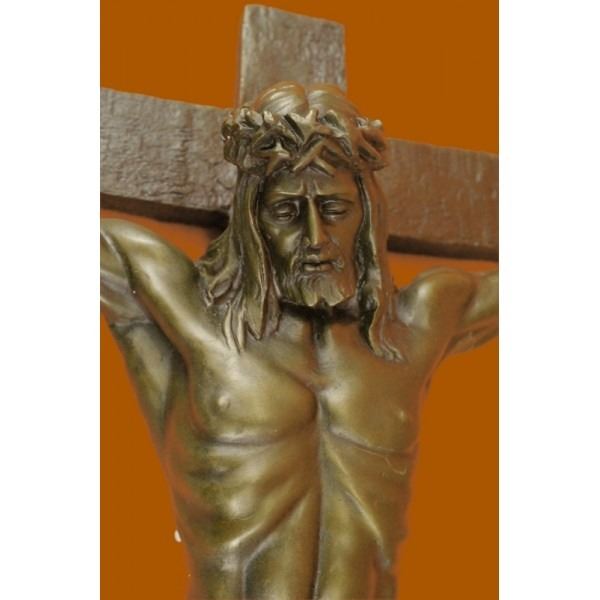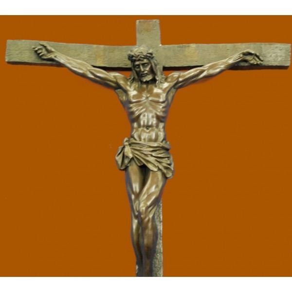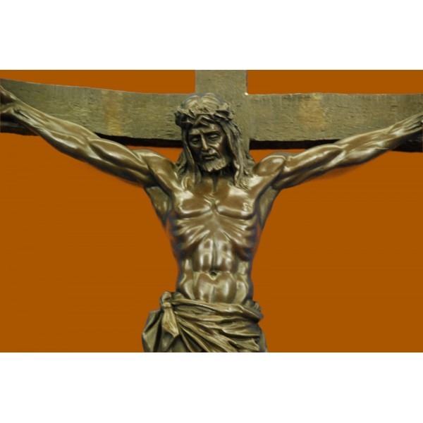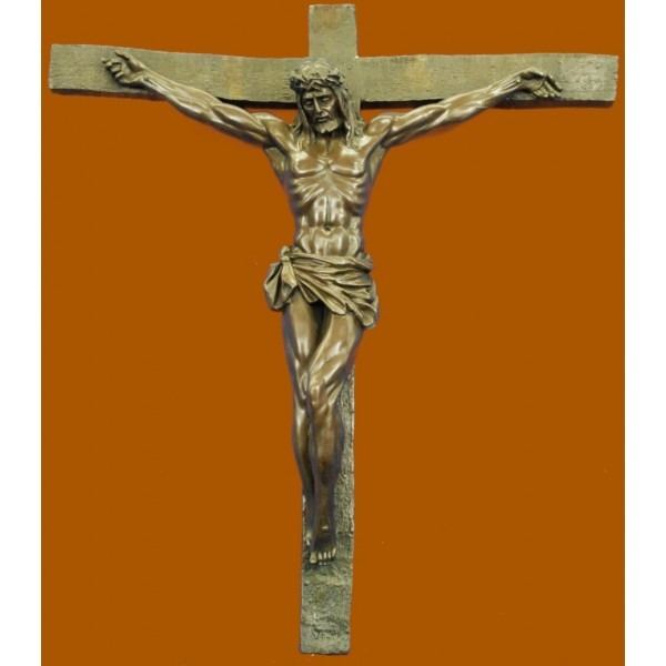 Christ, hanging below a sign proclaiming INRI, or King of the Jews, is depicted on the cross where he gave his life as restitution for all who believe, repent and call on His name. This artist's symbol of that historic prophesied sacrifice is rendered in quality designer real bronze to capture each detail, then hand-painted in a rich, brown patina. Dimensions: Height 24 X Width 21 inches. Weight: 15 LBS.
