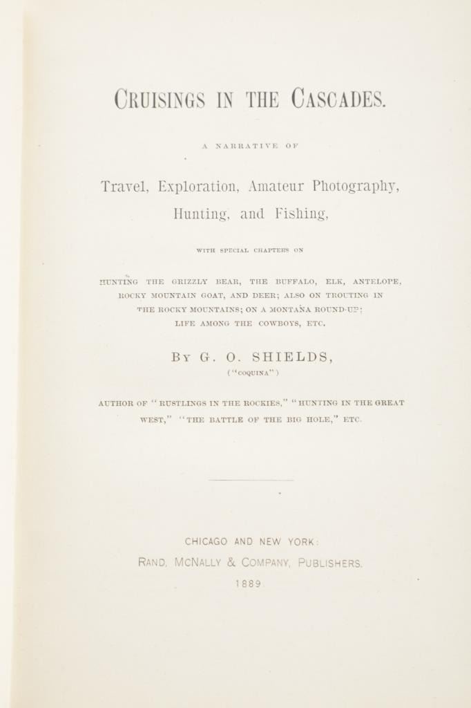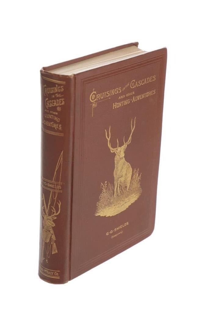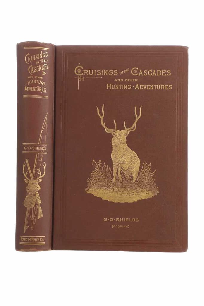 Featured in this lot is this first edition 1889 copy of “Cruising in the Cascades and Other Hunting Adventures”, by American writer and sportsman, George Oliver Shields (1846-1925). This book has 339 pages and includes a portrait, 30 full page illustrations, 77 illustrations total, decorated initial letters, and eleven pages of advertisement in the back. The book has a brown cloth cover, gold gilt spine and cover titles, and pictorial decorations with floral decorated end papers. A quarter of the book is devoted to the author's description of hunting in the Harrison Lake, Montana area. It also describes Lillooet Indians and hunting and fishing in British Columbia, Oregon, Washington, and Texas. The articles on elk, bear, and antelope hunting were first published in Harper's Magazine; those on buffalo hunting and trout fishing were in the Outing Magazine. This is a very attractive book with gilt-embossed elk on the front cover. The condition of this book is in good condition with slight browning to the pages consistent with the age of the book but otherwise in good overall condition. The measurements of this book are 8 3/4" x 6 1/4" x 1 1/4".