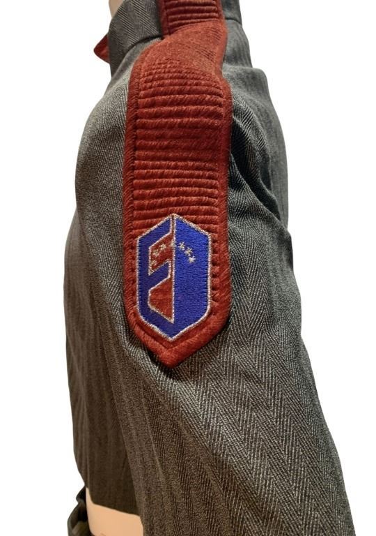 Original uniform worn on the science fiction television series 'Crusade' (1999), a spin-off television series from J. Michael Straczynski's Babylon 5, set in 2267, five years after the events of Babylon 5, and just after the movie A Call to Arms. The Drakh have released a nanovirus plague on Earth, which will destroy all life on Earth within five years if it is not stopped. The Victory class destroyer Excalibur has been sent out to look for anything that could help the search for a cure.