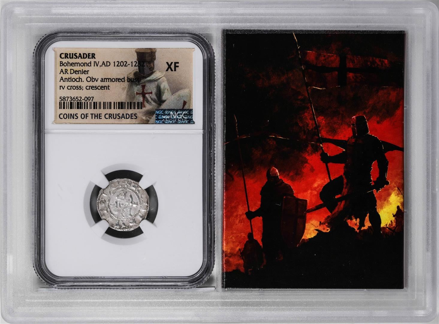 Crusader Bohemond IV, 1202-1232 AD AR Denier Ancient Coin NGC XF Story Box