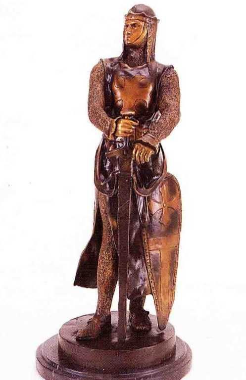 "Crusader" Bronze Sculpture - After Taure - Beautiful Color Patina - Mounted On Fine Italian Marble Base - Signed - Mint Condition - 24"H X 11"W - Lost Wax Cast Bronze