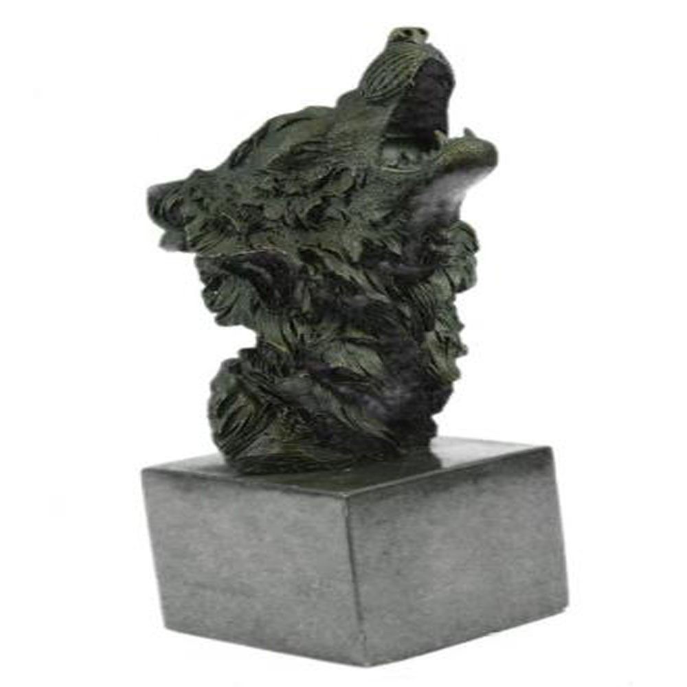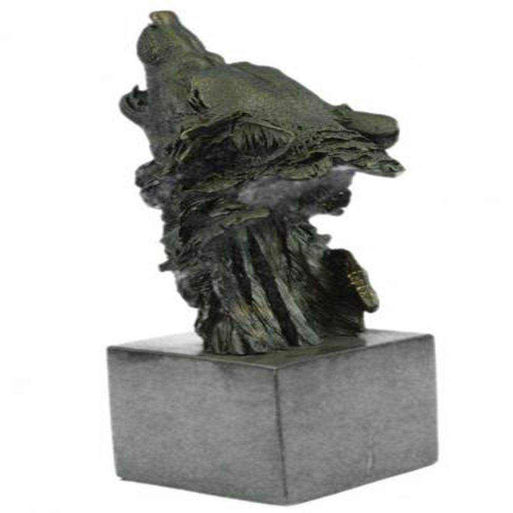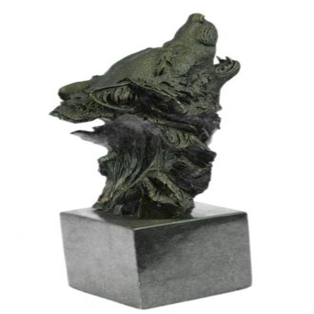 This sculpture captures the wild dignity of the wolf. The base of the sculpture in its abstract sense resembles that of a winding tree trunk that blooms into a bust of wolf head that stares out of its power with somewhat pensive eyes. Wolves are probably one of the most misunderstood of the wild animals. Tales of cold cunning abound, in spite of the their friendly, social and intelligent traits. They are truly free spirits even though their packs are highly organized. The wolf has multiple meanings. They stand for loyalty, success, perseverance, stability, thought, pathfinder, teacher, intuition, learning, and the shadow. The 100% bronze sculpture was cast using the ancient method of lost wax casting and stained with a brown patina finish and is mounted upon a marble base. Bronze Dimensions with Marble Base: Height 13 X Width 4 Inches. Weight: 12 LBS.