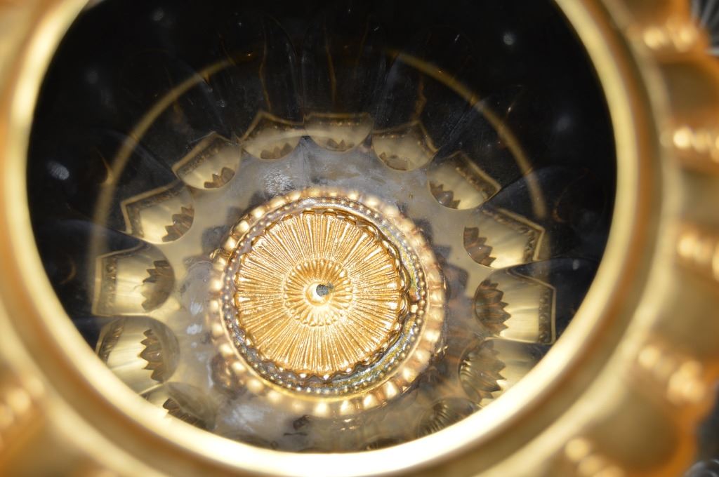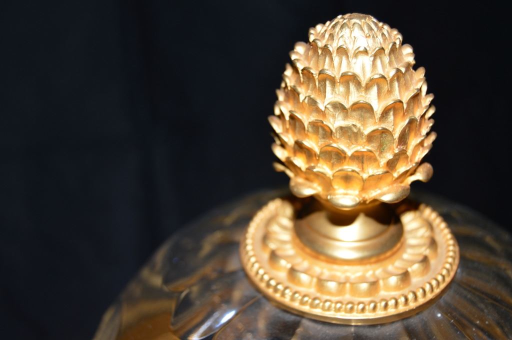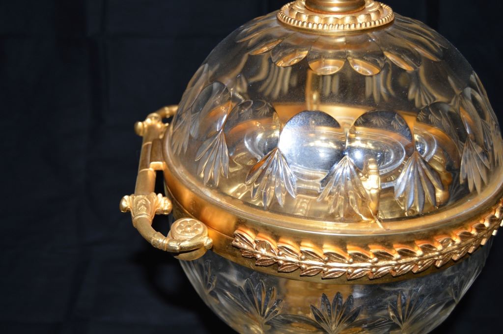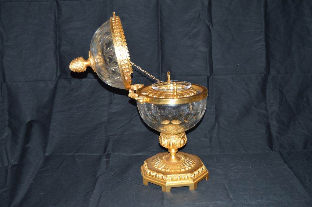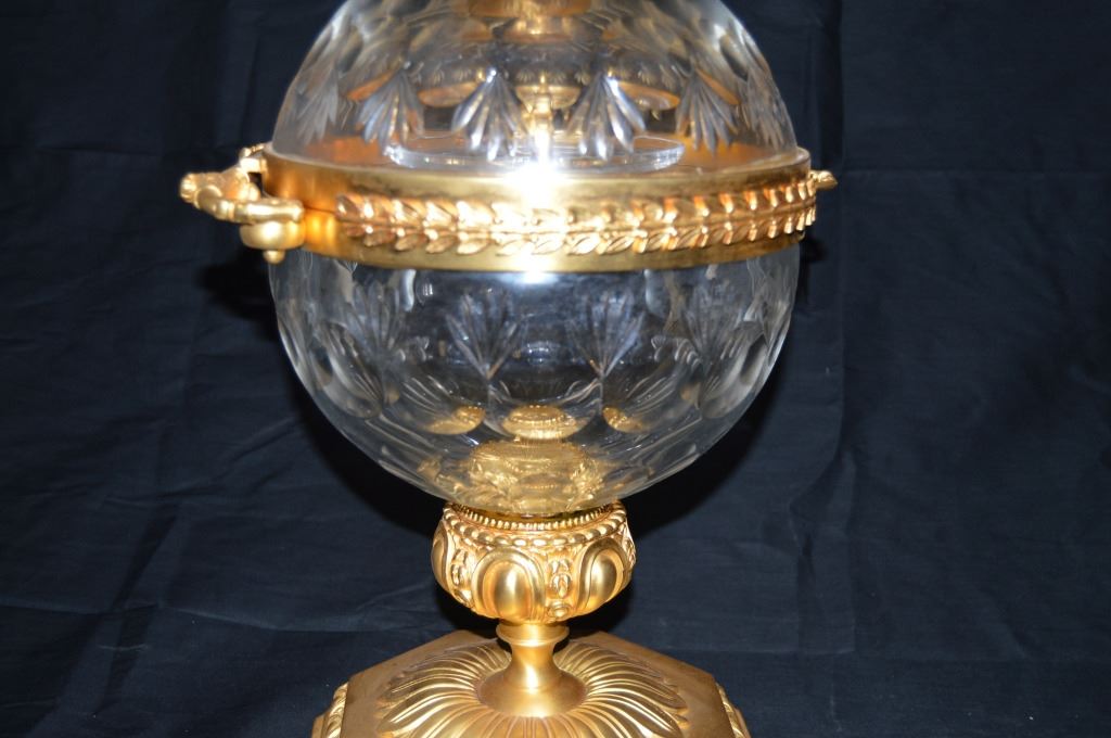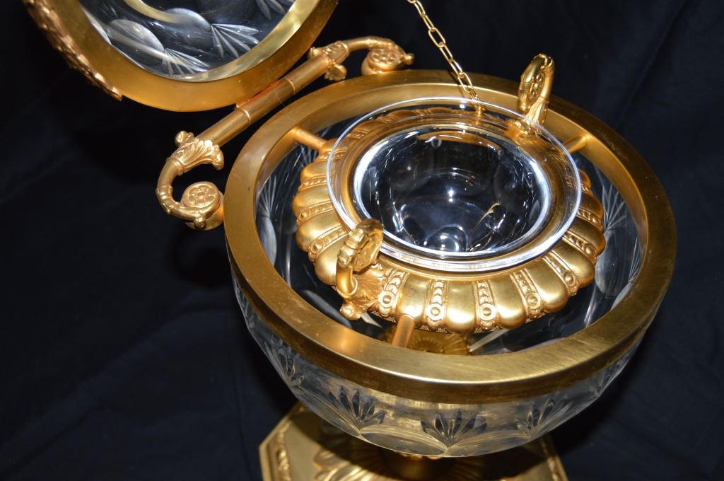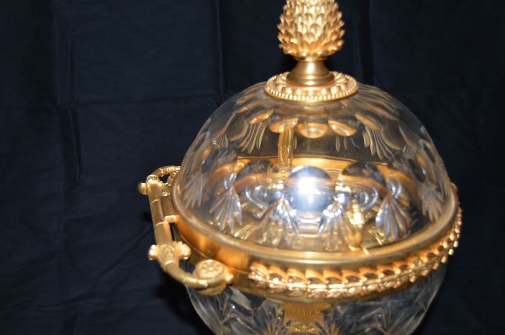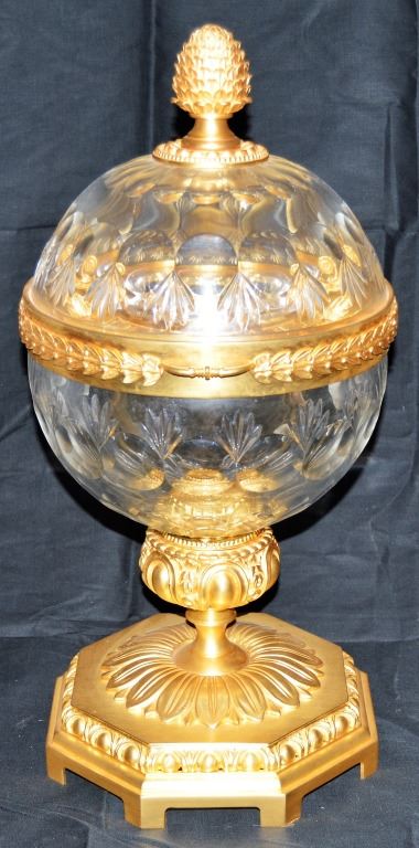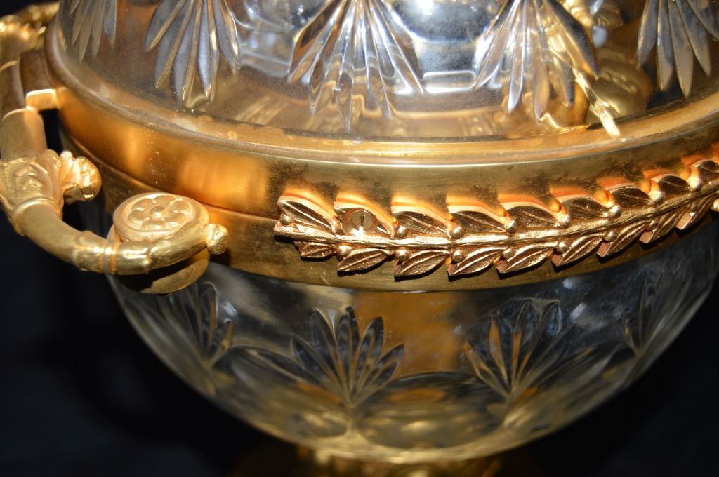 Crystal And Hand Chased Dore' Bronze Caviar Server Beautiful Cut Crystal And Hand Chased Doré Bronze Caviar Server. Early To Mid-20th Century. The Caviar Server Shows Age Appropriate Wear From Use, Some Minor Surface Scratches And Slight Ware. Overall In Pristine Vintage Condition. Please See Photos For Additional Visual Description And Condition. Closed Size: H 19" X W 10 ½" X D 9"