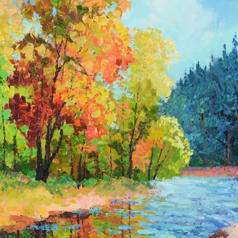 "Crystal Blue Stream" is an original oil painting on stretched canvas by Alexander Antanenka, hand signed by the artist. Includes Certificate of Authenticity. Measures approx. 24" (image-diameter).