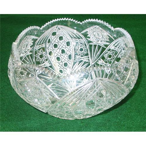 East European diamond cut crystal bowl. 5ins high 8ins diam. c.1950