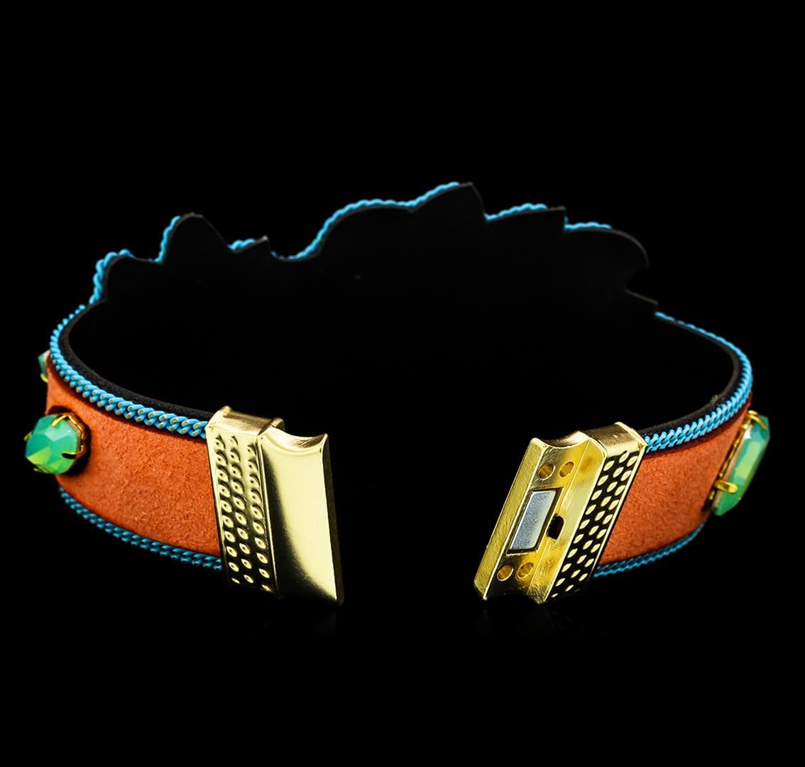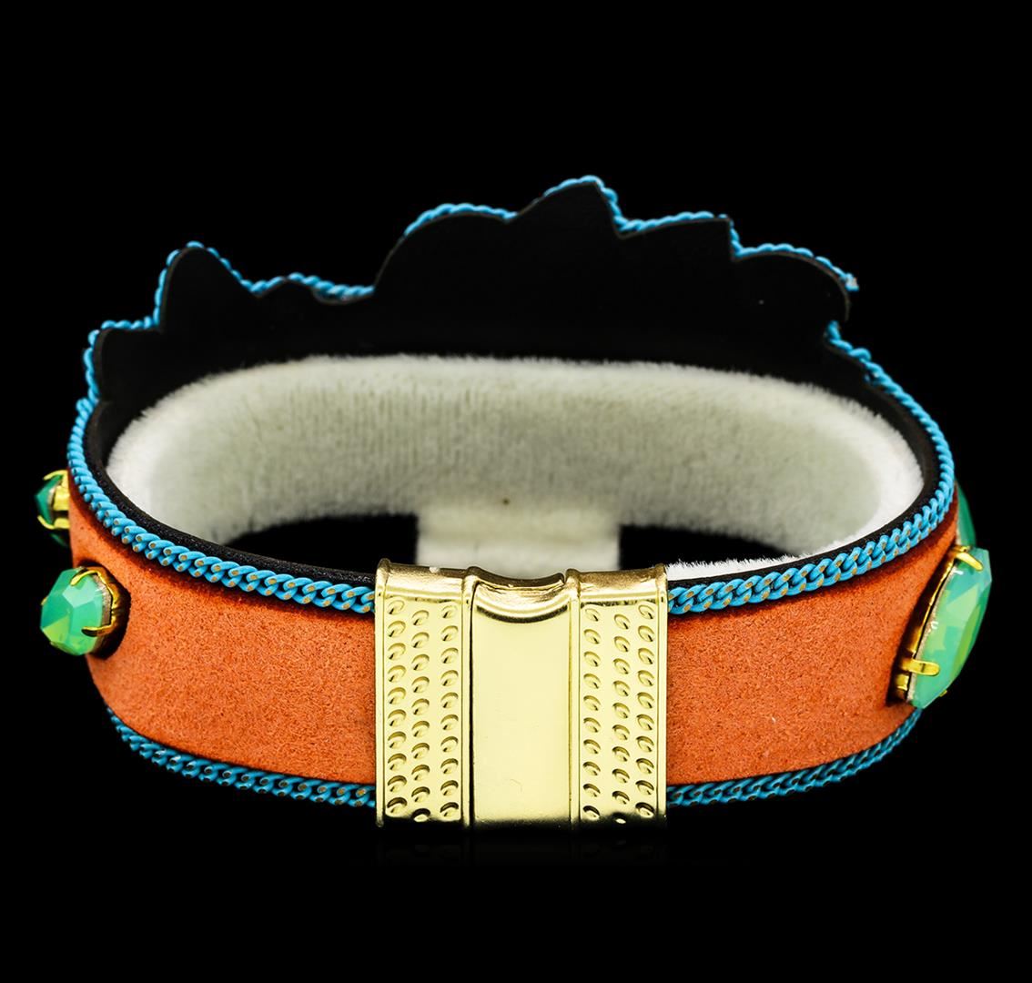 High end designer jewelry. Crystal Branch Bracelet - Gold Plated. Gold Plated Mag Clasp. Coral/ Blue. 7.5inches. Total Weight: 25.5 grams.