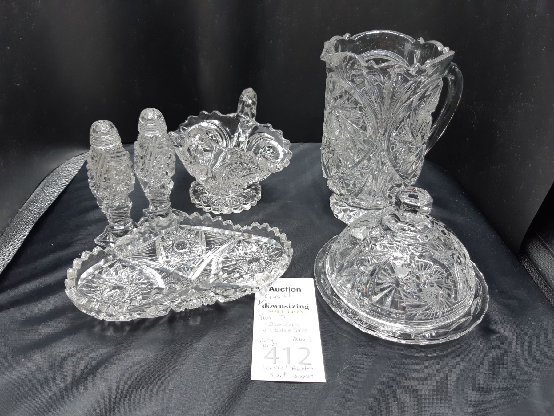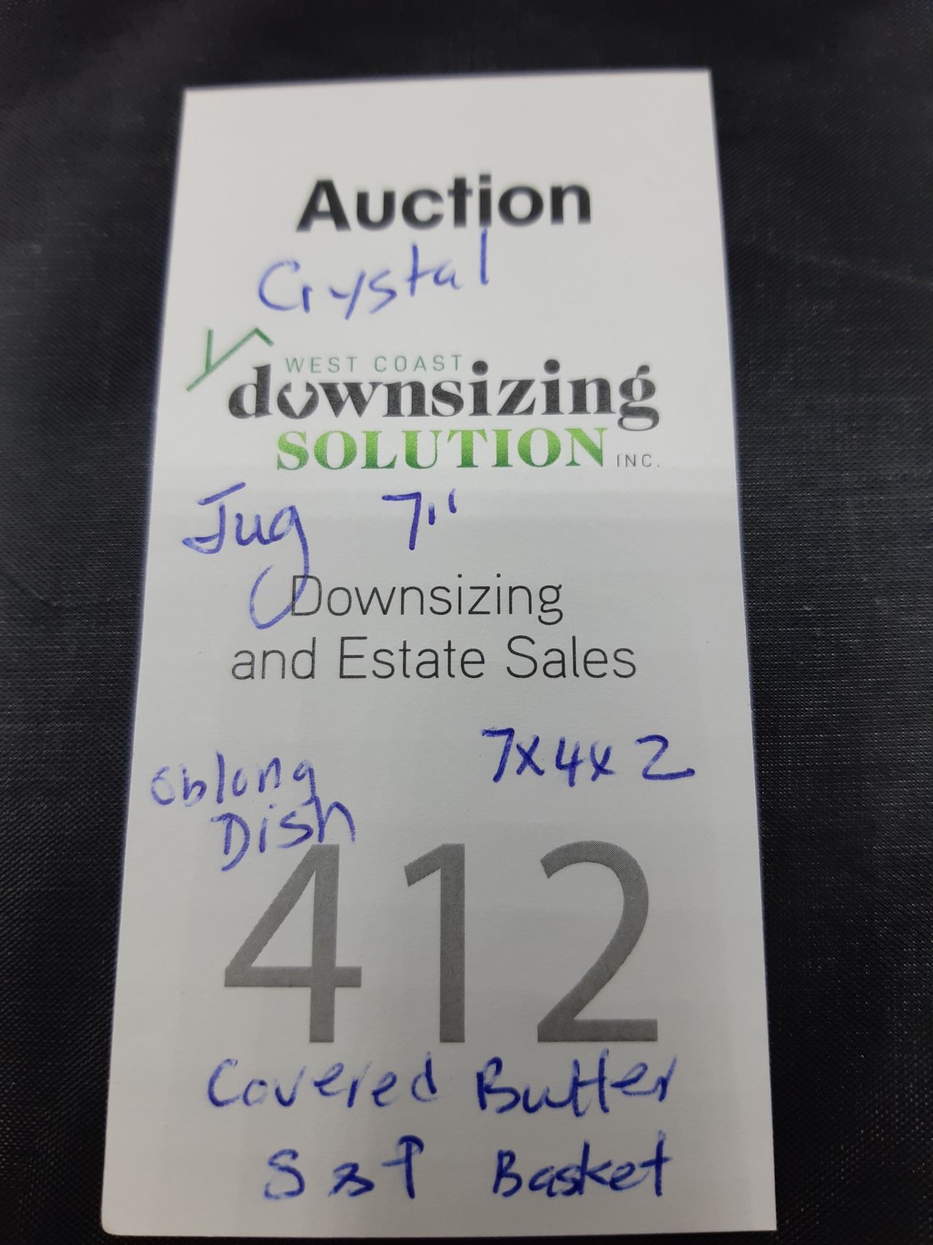 Jug 7" , Oblong dish 7x4x2, Covered butter and S& P. Bring packing materials and pickup at 10am