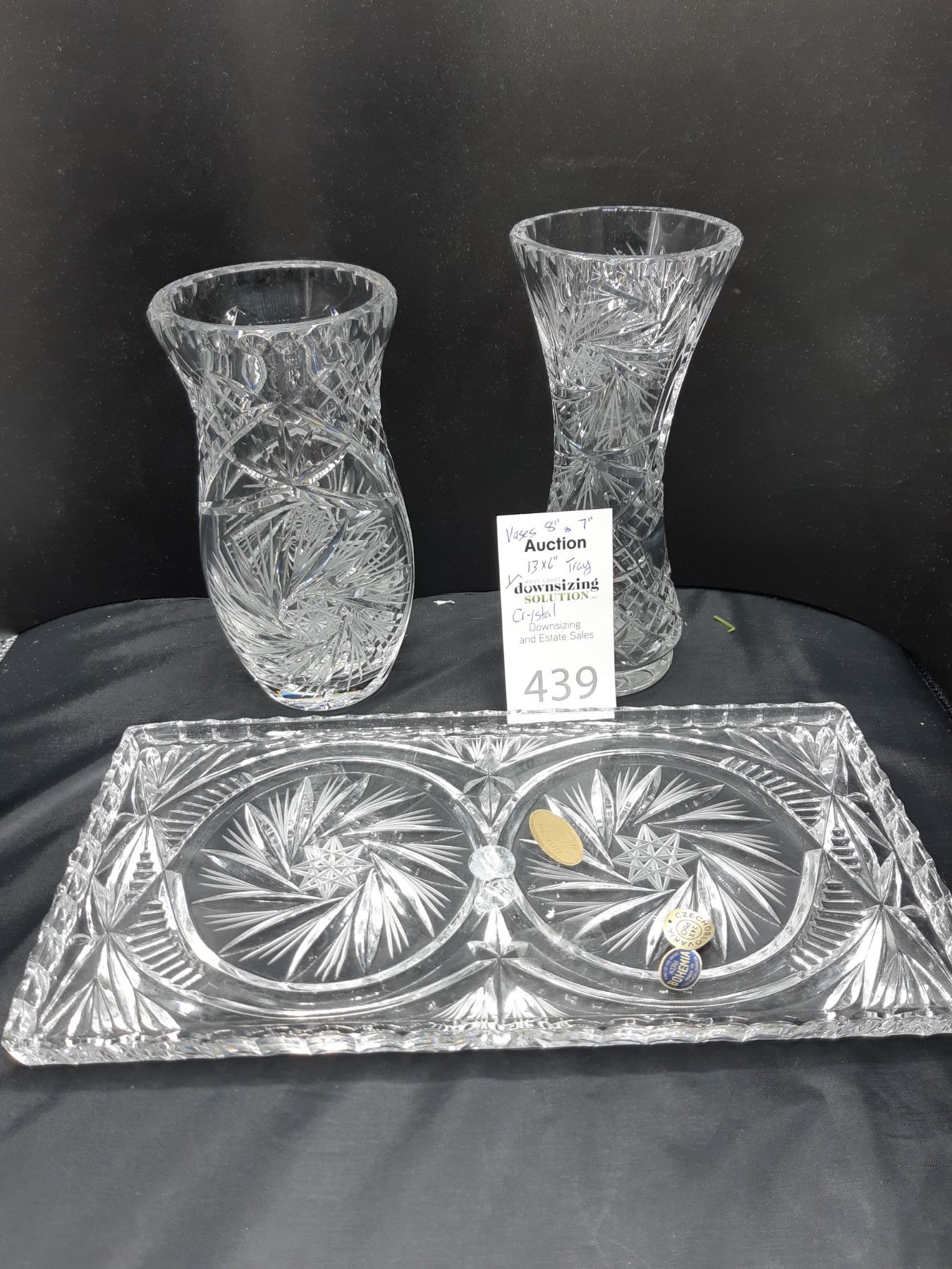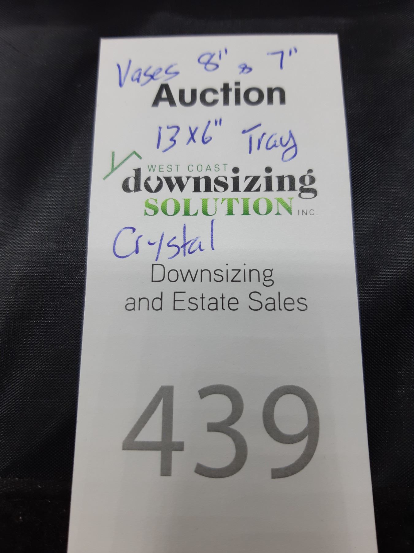 Vases 8" & 7" tray 13x6 Bring packing material and pickup at 10 am