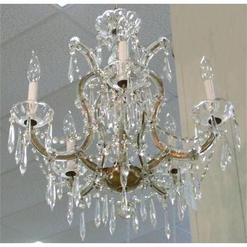 This is a beautiful crystal chandelier with five candlestick lights and one interior light. It is wired for USA usa and ready to be hung.