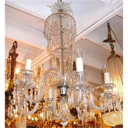 This is a wonderful crystal chandelier with six candlestick lights on spiral crystal arms...a beautiful focal point in any setting!!!