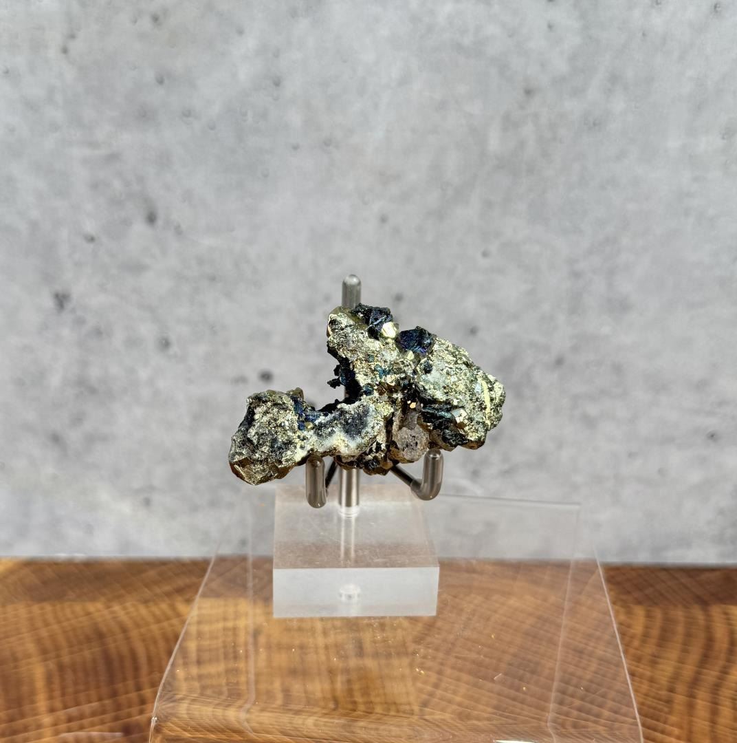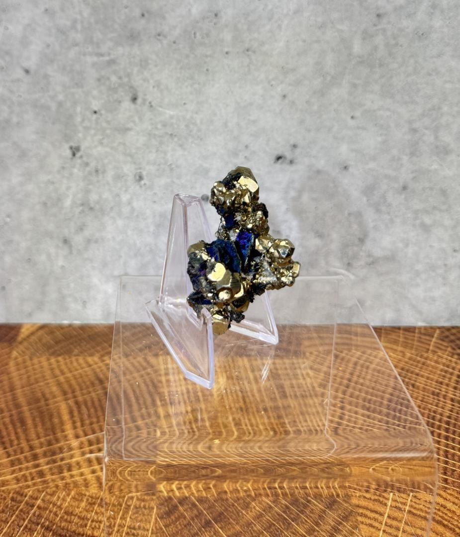 Crystal Covellite on Pyrite. As good as it gets, one of the best examples ever taken out of Butte. 75.8 grams. 2 3/8" by 1 1/2" by 1 3/8". Provenance: From the Estate of Kitty's Copper Shop Butte Montana.