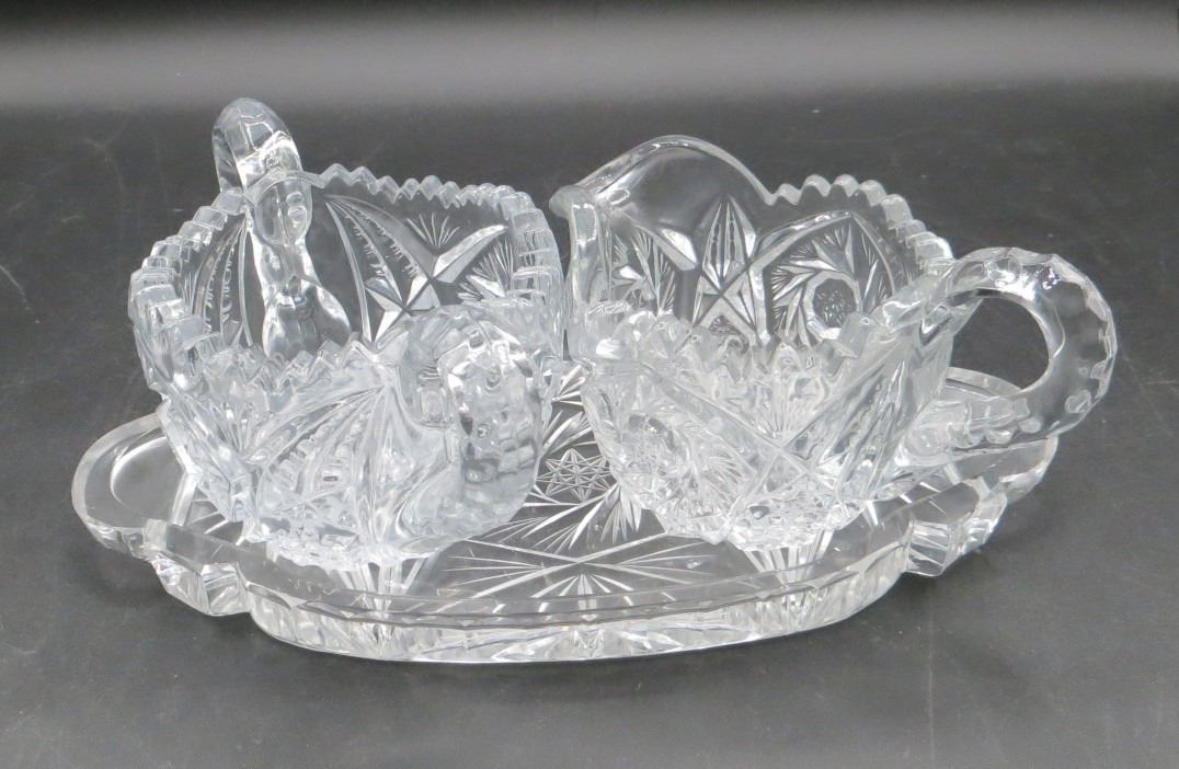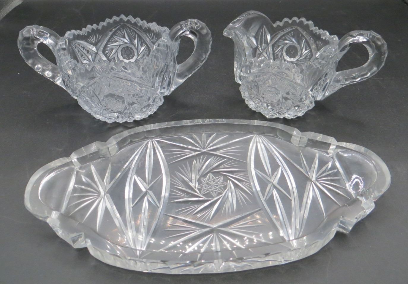 Crystal Cream & Sugar Set With Serving Plate